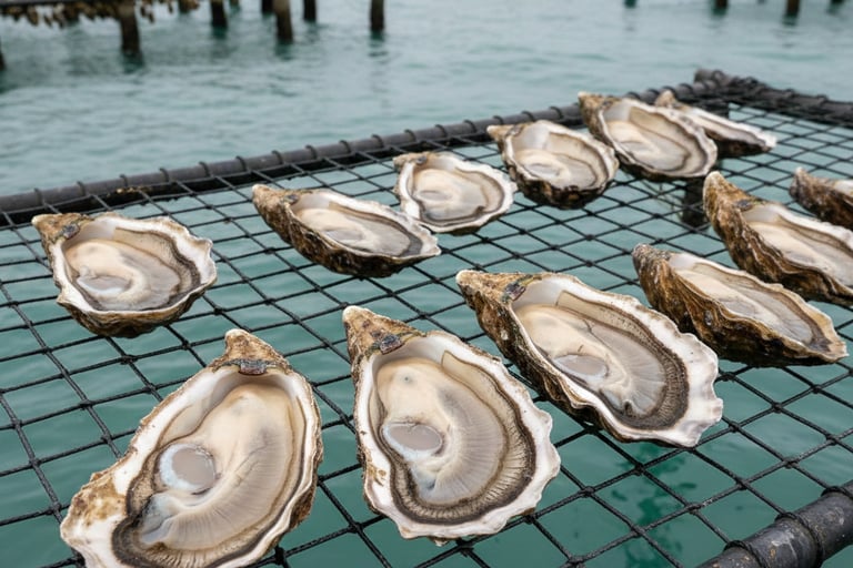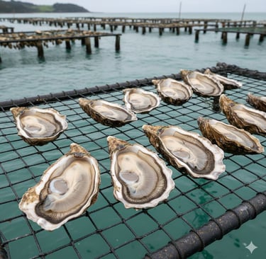 The primary farming method for Pacific oysters has traditionally been the intertidal rack system, where spat is collected on wooden sticks and attached to wooden racks anchored in the lower intertidal zone The majority of farms are located in sheltered bays and harbours of the North Island, including Whangaroa, Mahurangi, Kaipara, Coromandel, and the Bay of Islands Historically, spat supply relied heavily on wild-caught spat, mainly gathered from Kaipara Harbour However, there is a growing shift towards using hatchery-produced single-seed spat, with the Cawthron Institute being a key provider of selectively bred spat This shift supports the adoption of alternative grow-out systems such as plastic trays and subtidal longline systems, including the Australian-designed BST system, which allows for greater control over oyster growth and mechanisation
